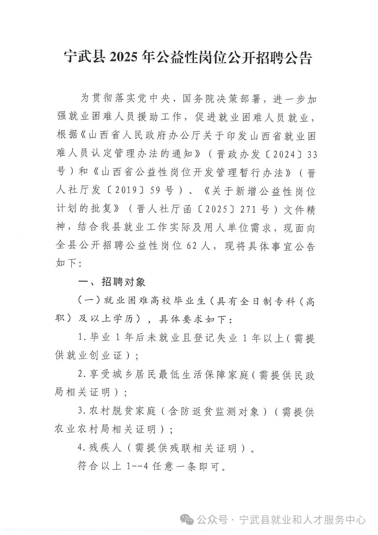 宁武县2025年公益性岗位公开招聘公告